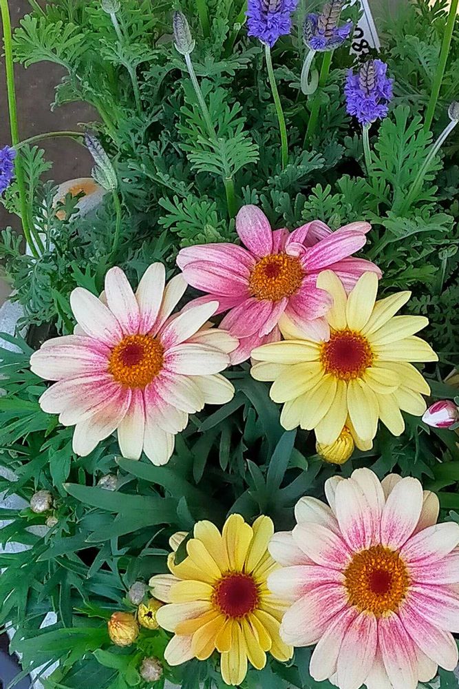 マーガレットとレースラベンダー🟣の寄せ植え素敵なカラーリングですね。