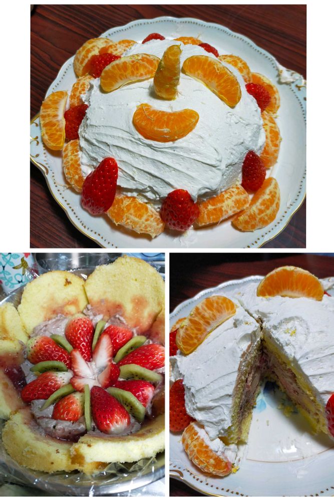 ケーキの飾りつけは子供らしいですね。大人だったらデコポンはカットして断面をみせるのですが。
