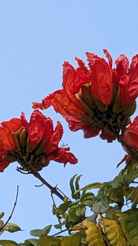 那覇の産業支援センター前、奥武山公園内〜うるま市石川伊波県道6号線沿いには珍しい黄色いカエンボクが見れるそうですよ💛🌿
