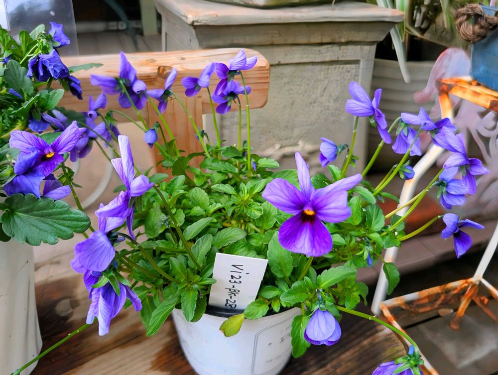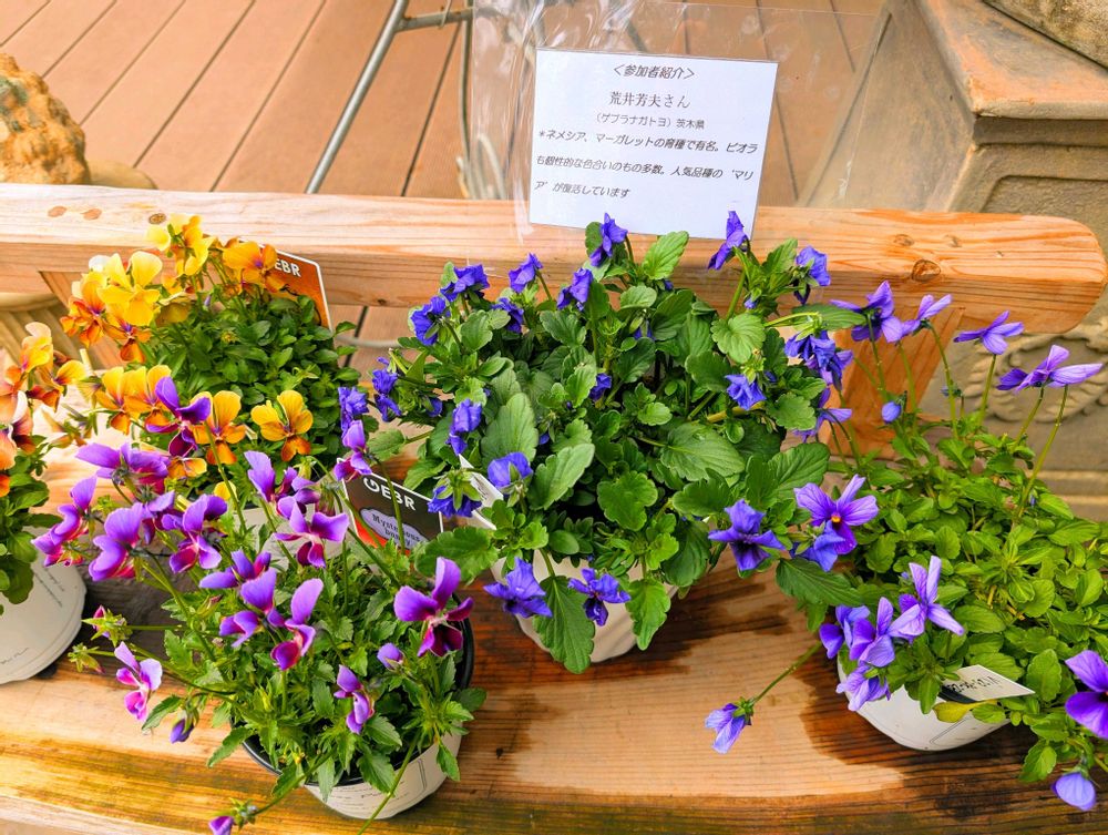 ネメシアやマーガレットの育種で有名なナーセリーさん。ビオラも個性的な品種が多数ありました。YouTubeで見ていた品種が実際に見れたの嬉しかったです。