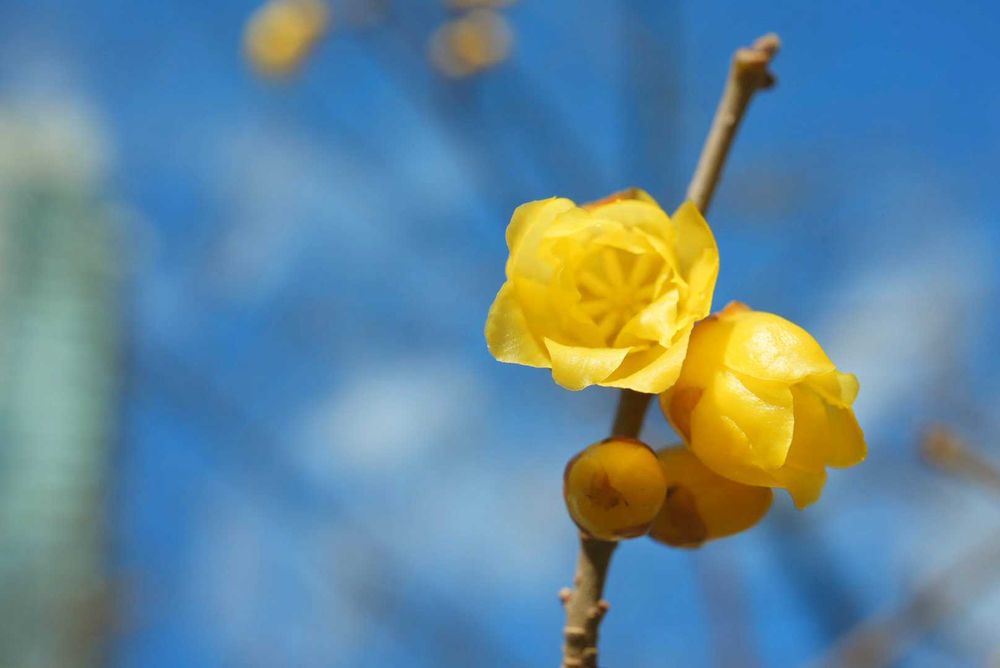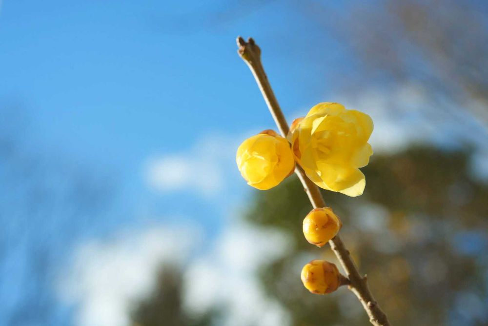 空の色が水色でろうばいのやさしさがでてて素敵ですね