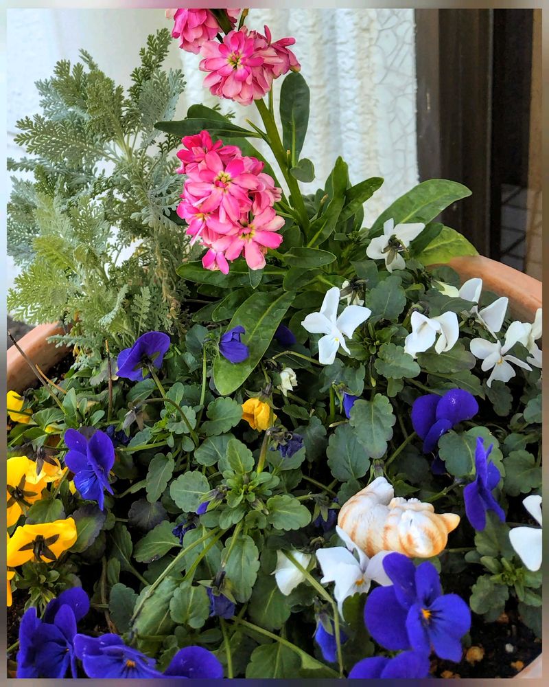 ストックを中心にシルバーレースとビオラさん達で寄せてみました🎵𓂃🌸🌿𓈒𓏸