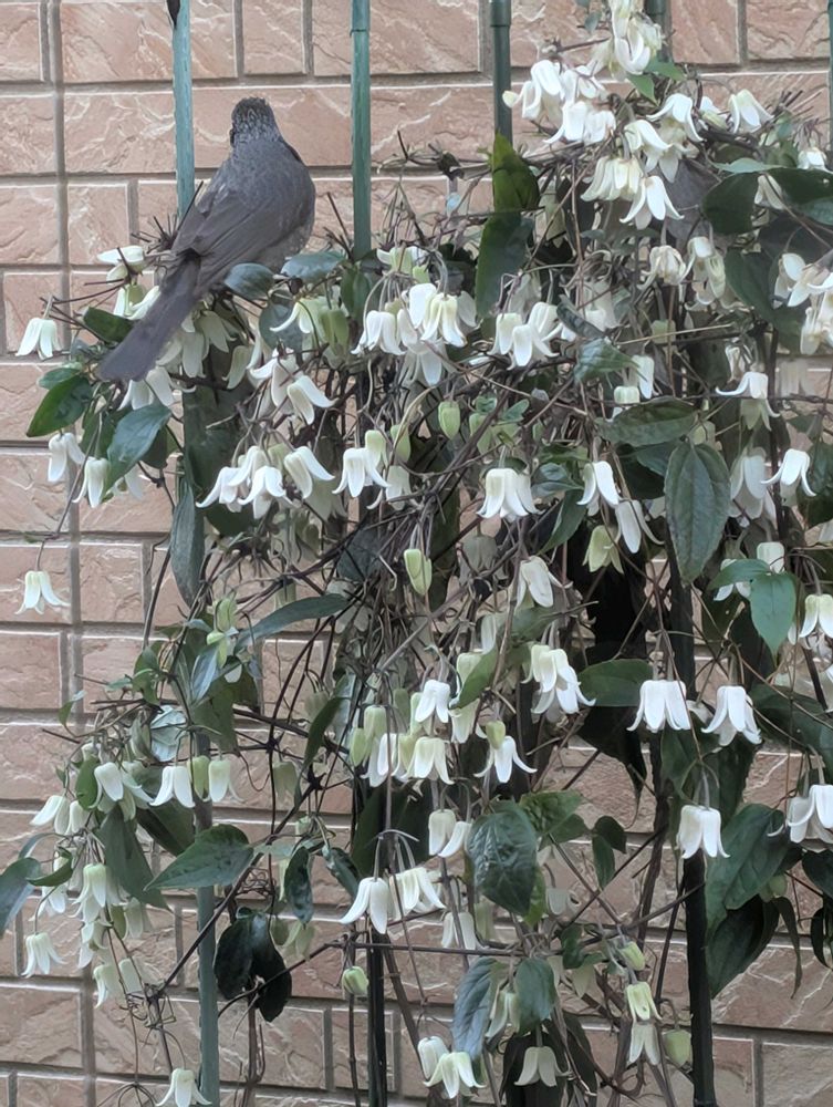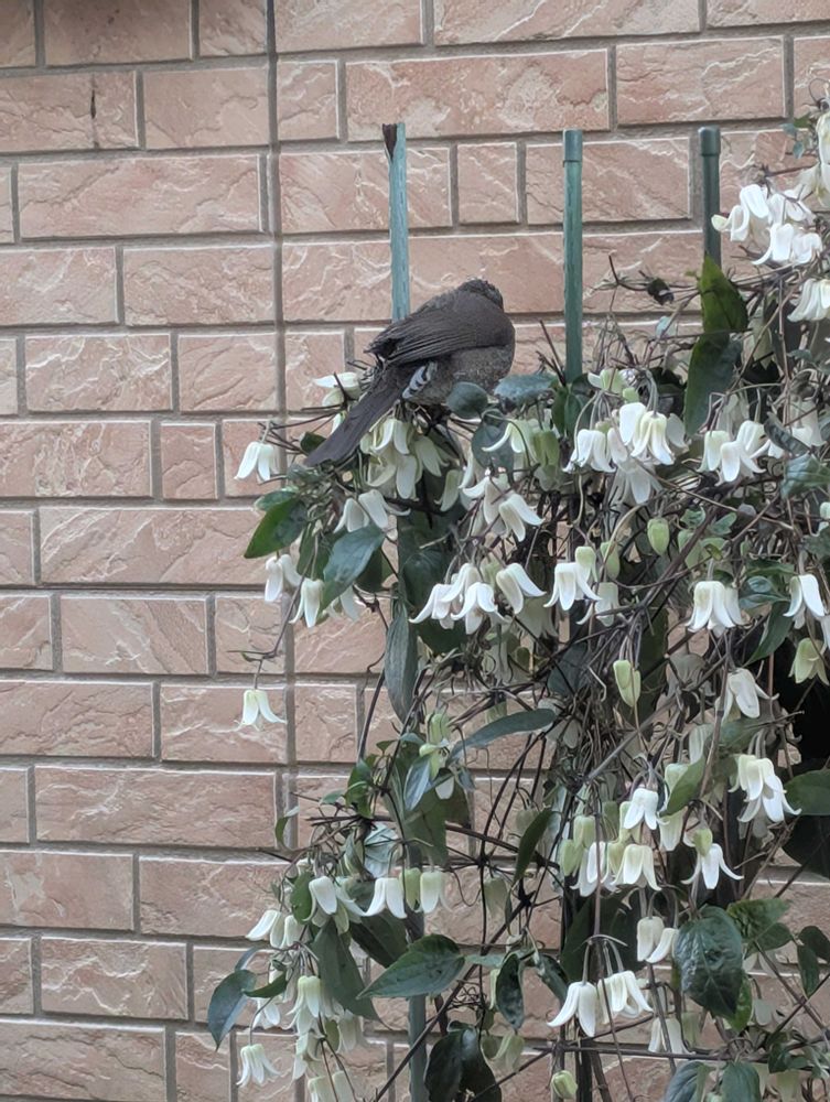 今もまたきていますが、見ていると花の蜜を吸っているようです🐦⬛