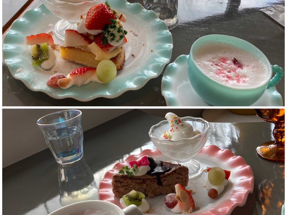 SNS映えるケーキセットを食べに若い女性でいっぱいです😍