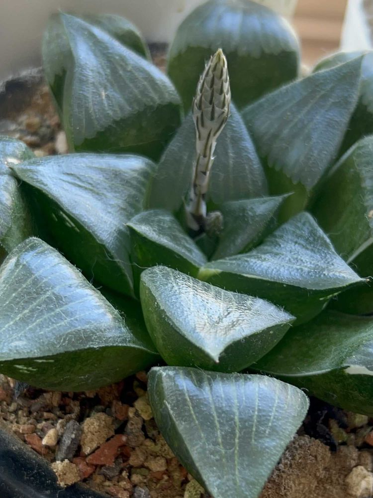 お迎えして数年経ハオルチアさん、大きくもならなければ子株も出ない、、、けど花芽は毎年出ます😅しかも今年は2つ💕💕