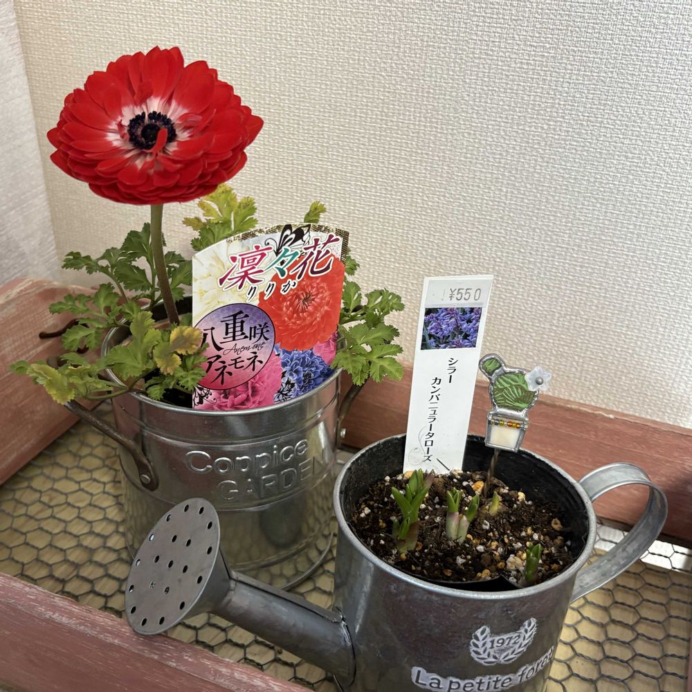 二人のお孫ちゃん、バァバ譲りのお花好きですね🌼ブリキの鉢可愛いしピックもちゃんと選んでますね👧