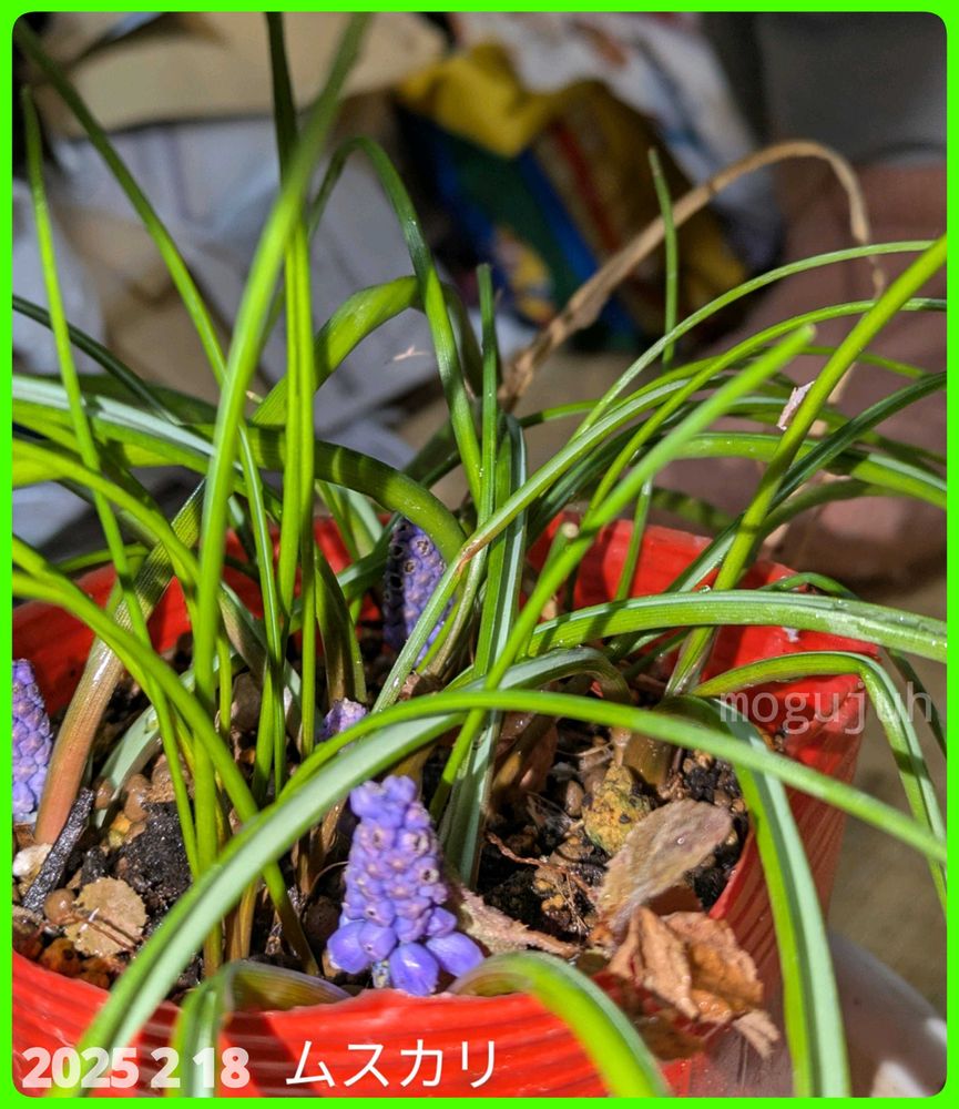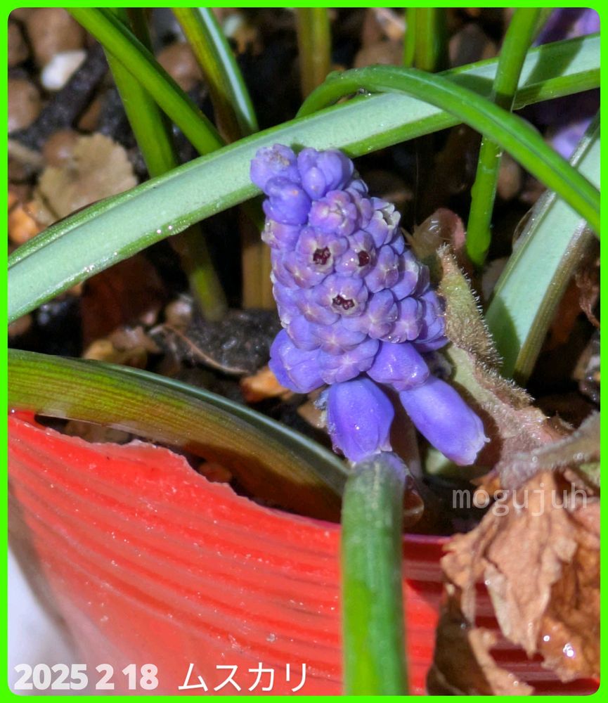 アパートのベランダで咲き始めた「ムスカリ」です‼️