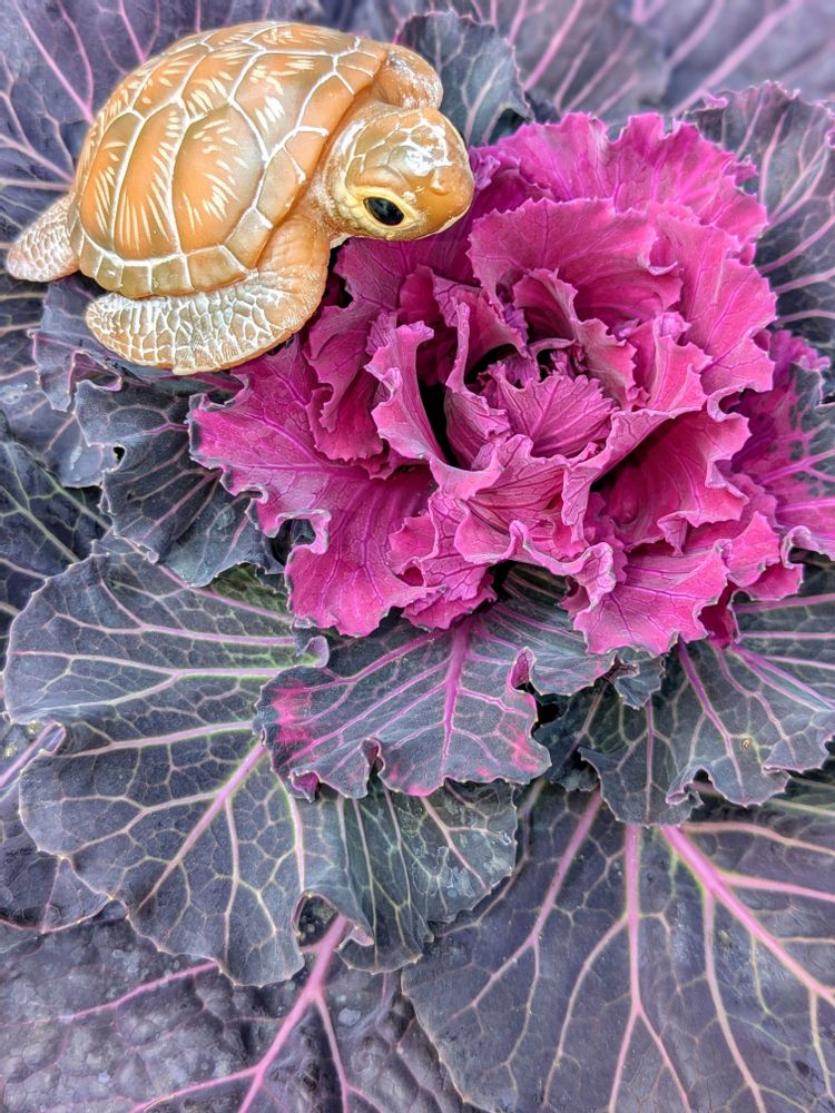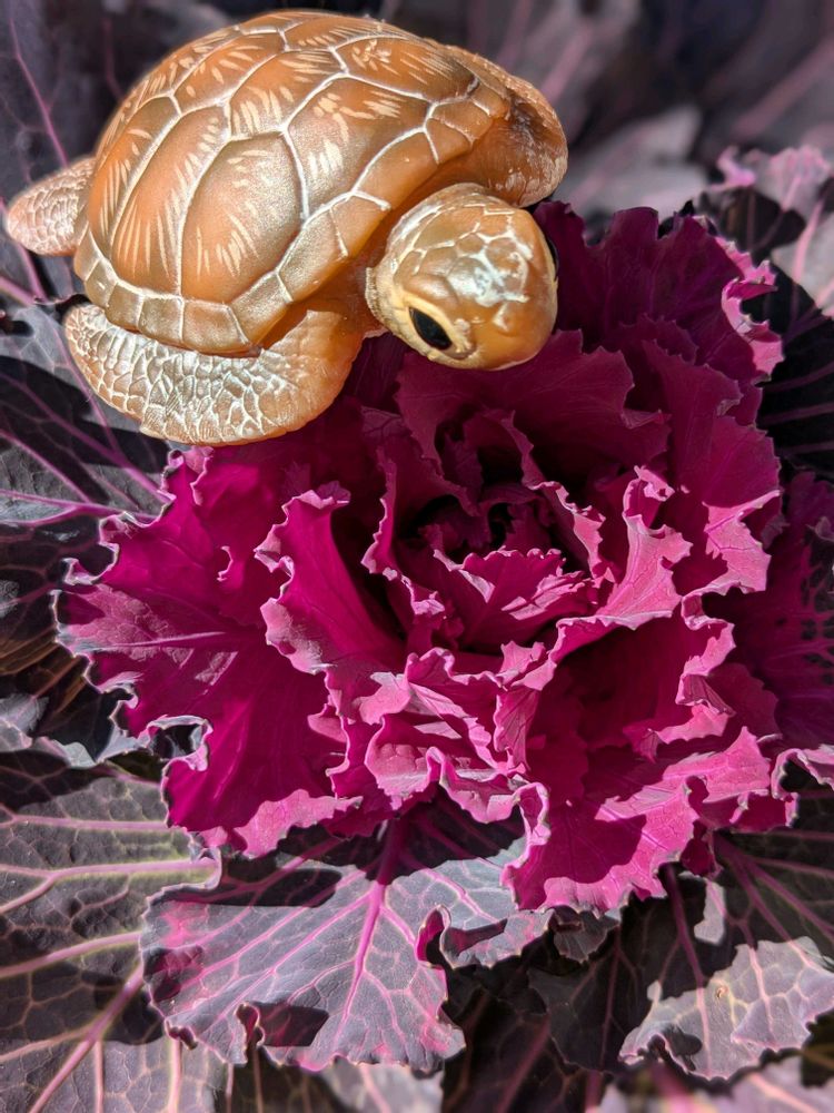 ①②珊瑚礁を泳ぐウミガメさん🐢のイメージで葉牡丹に乗っけてみた〜の図