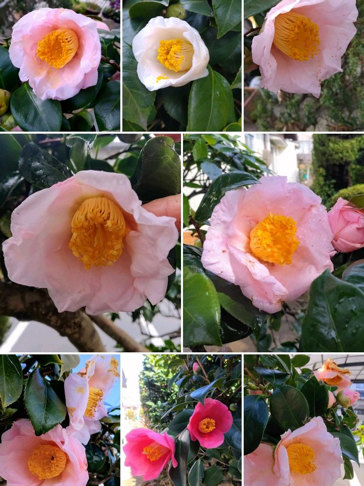 ①我が家のツバキが咲きだしました。今年は、少し遅い気がします。