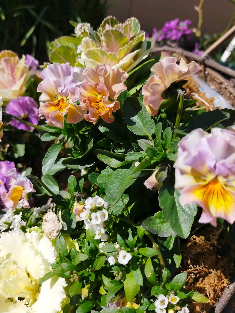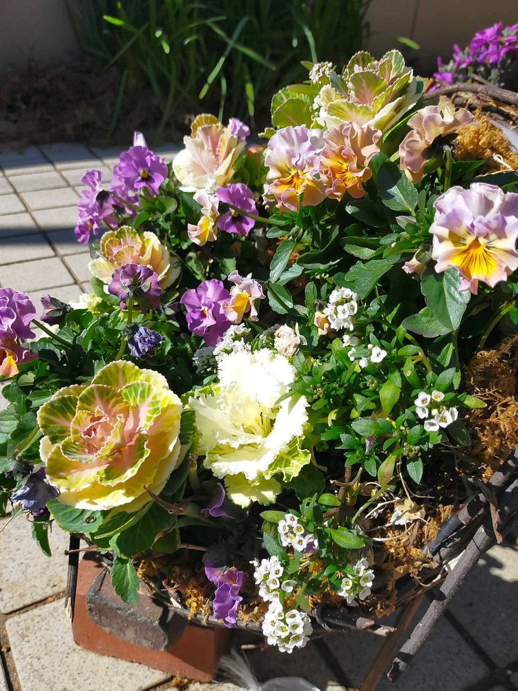 パンジーと葉牡丹リースの寄せ植えモリモリ可愛いですね🤗
