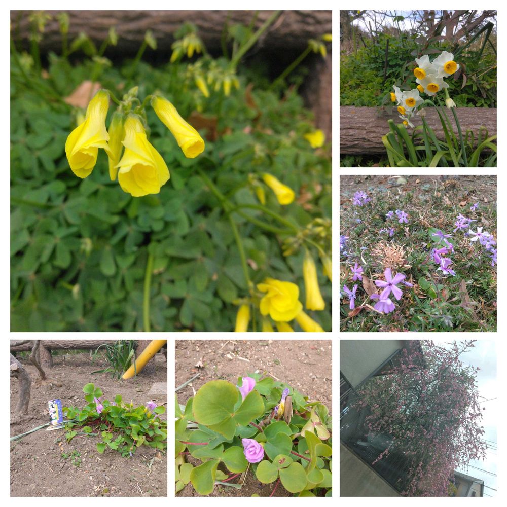 別の区画花壇にはオキザリス.バリアビリスパープル は曇り空でまだ咲いてなかった