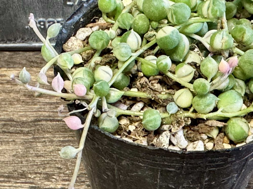 増やしたいので小分け管理してる斑入りグリネは、ピンクの新芽がなんとも可愛い😍