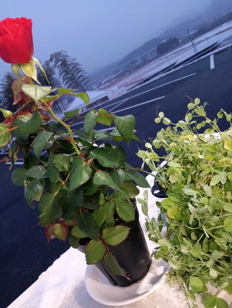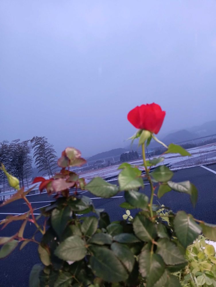 夕方5時半、雪の華が舞ってます、🤍♥️楢葉町に来て4ヶ月、初めての雪景色、土地の人に笑われた、😁こんなもんじゃね〜と😝