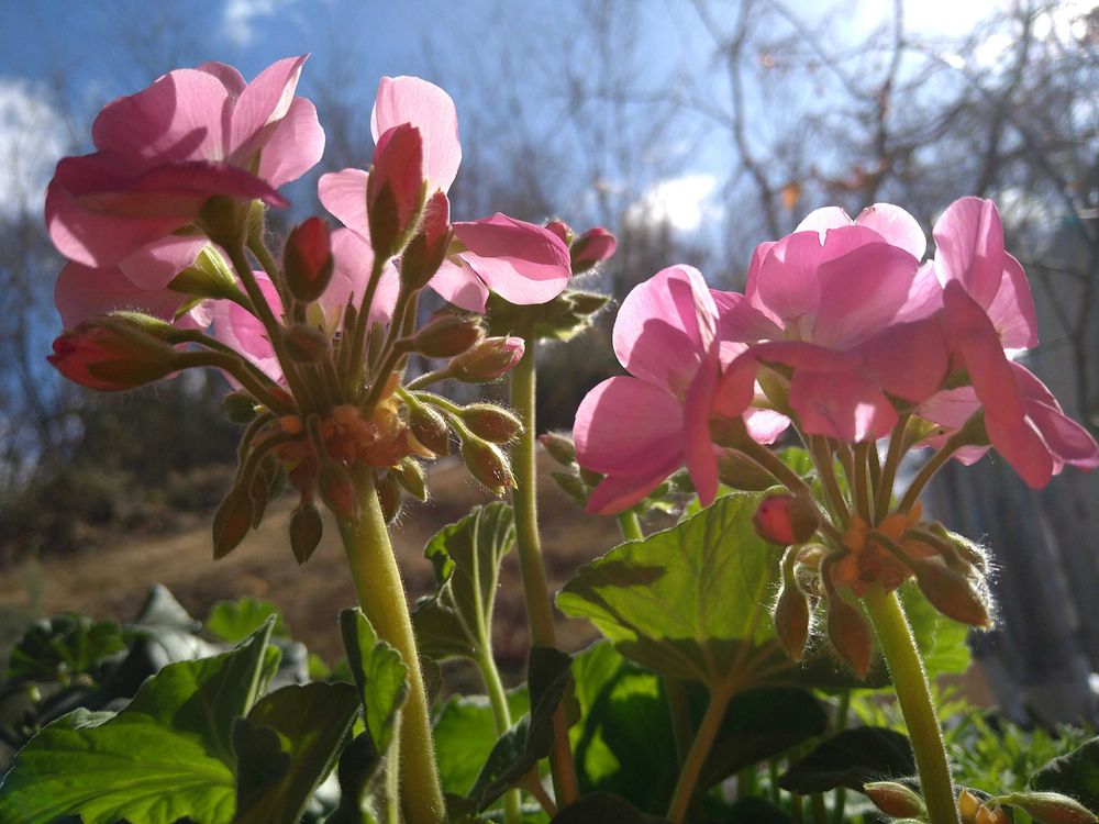 ①ちょっと青空でたのでちょっと外気浴のゼラニウム🩷寒いのですぐ玄関内に。