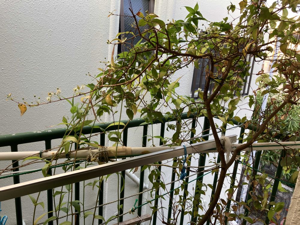 全体像がワサワサして見苦しいのは、グロリオサが絡まっているせいです。