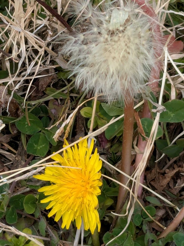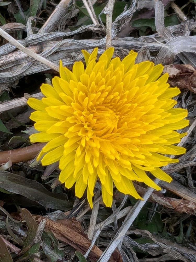 枯れ草の間から覗くタンポポ可愛い〜♡ですね〜春近しですね〜🤓🙌