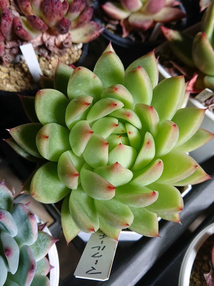 リップスティック🎵この方、手のひら位あります😁小さい花芽が1つ、もうひとつ葉っぱの中にありました👍️ぎゅっと!締まって綺麗です😆