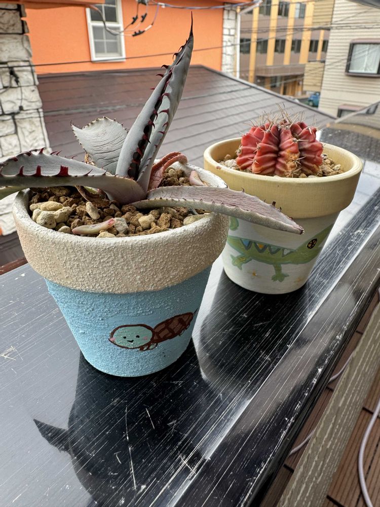多肉ちゃんも大体おひとり様で植えてましたが、置き場所がなくて寄せ植えするようになりました♪