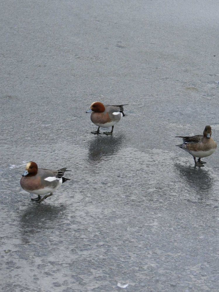 寒い湖凍った湖、カモさん達がとっても魅力的でした🙇