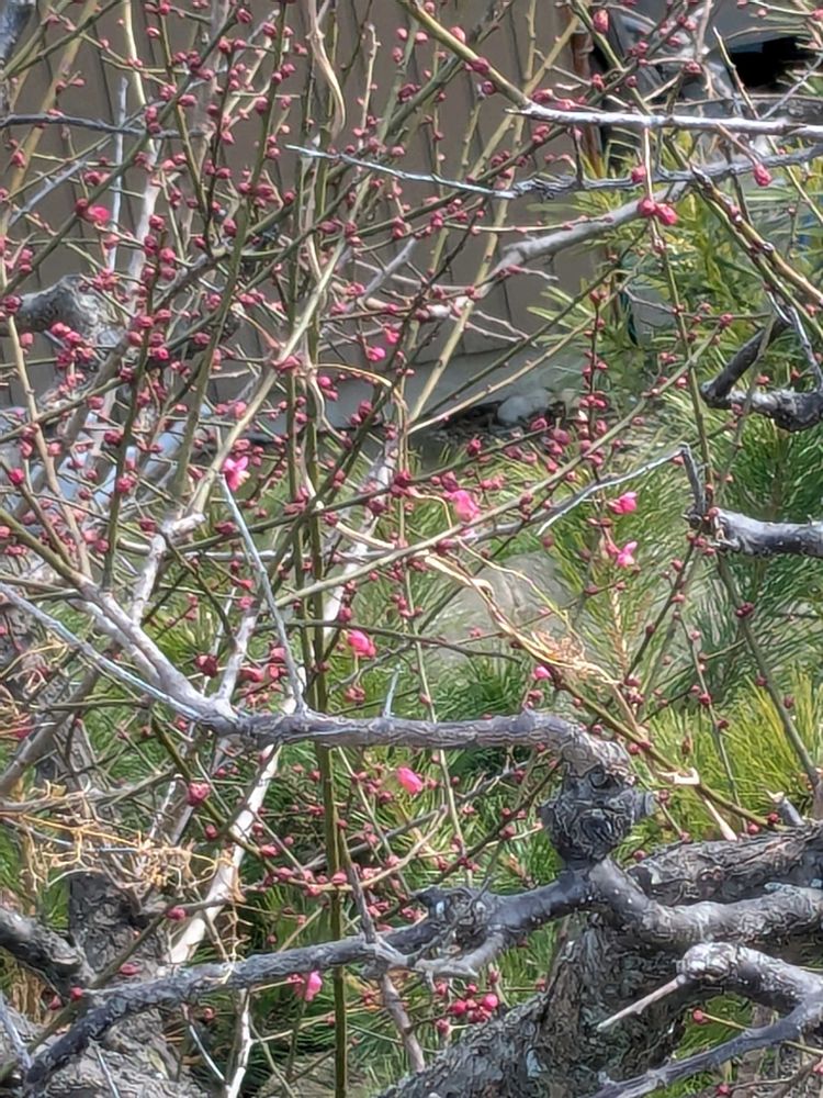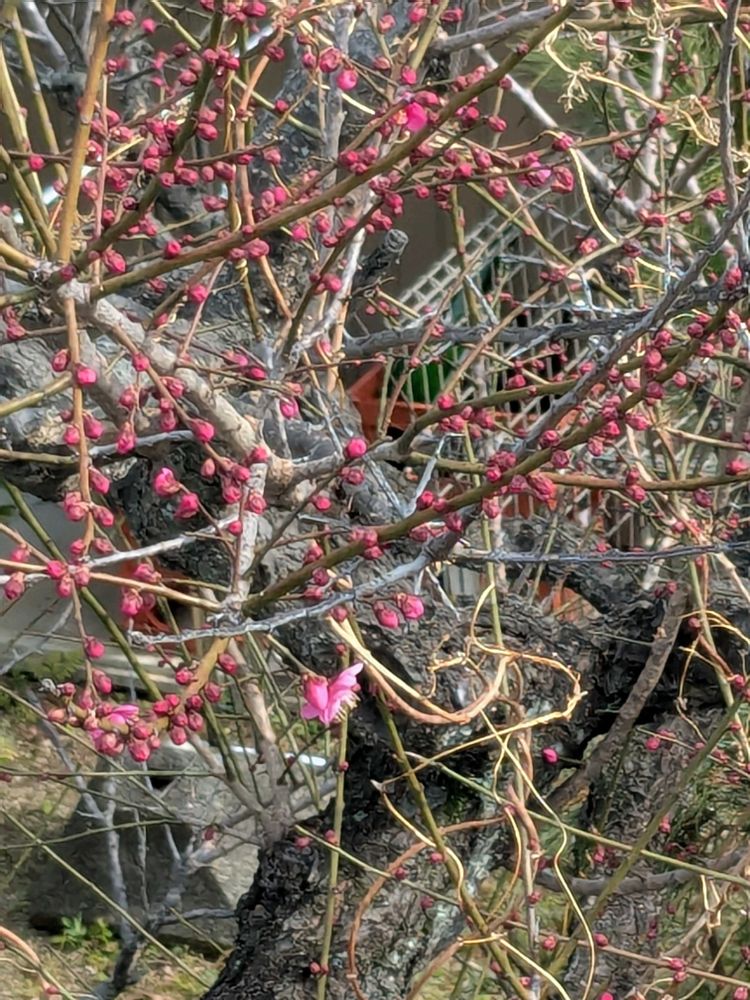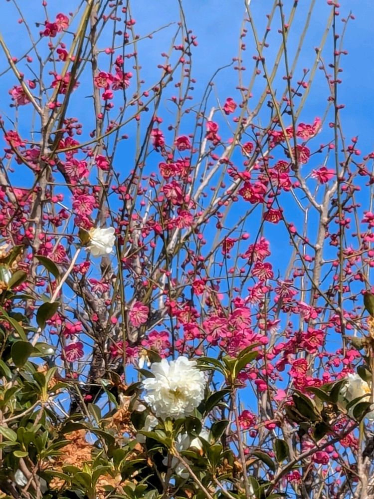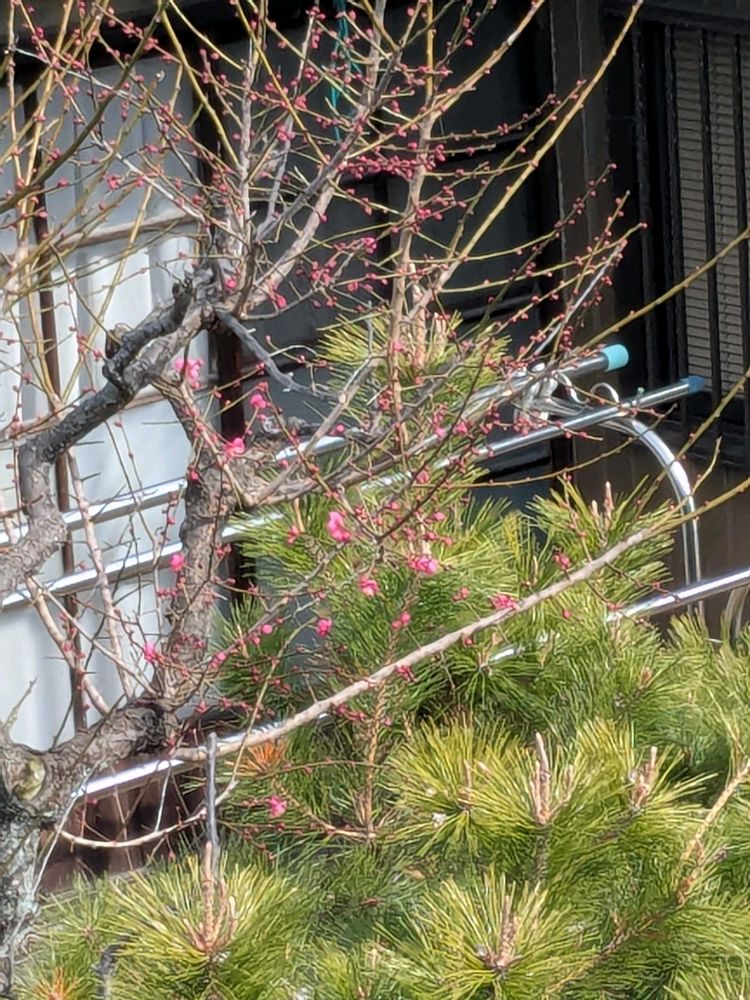 ご近所の梅はまだまだですが、バス🚍と市電🚃で出かけた先で咲いている🌸に出会えました👍