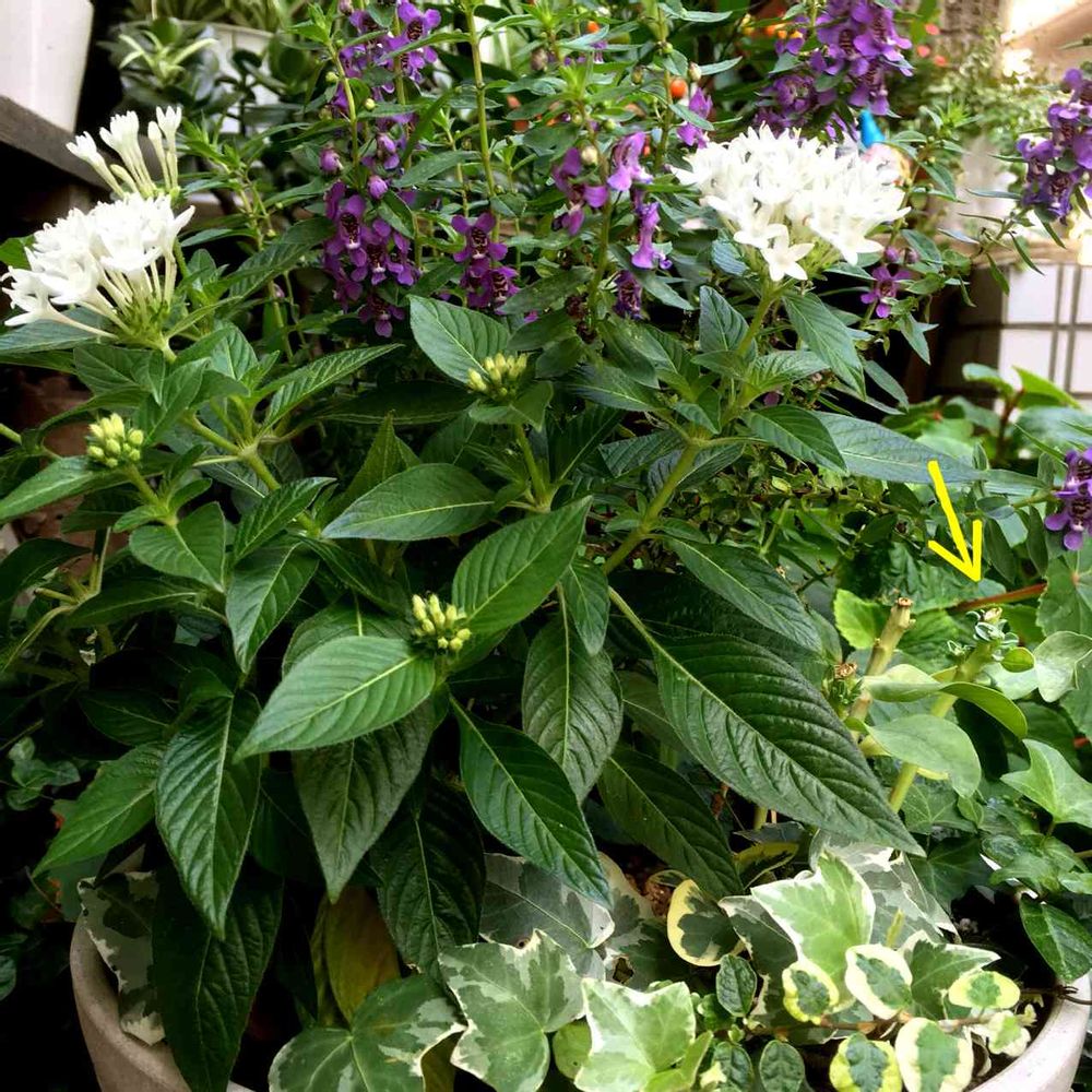 切り戻したハツユキソウから新芽🌱出てきました(黄色矢印)