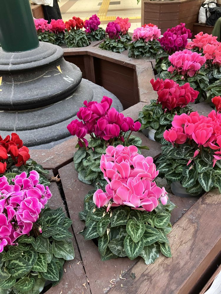 シクラメンロード🩷💜カリヨン広場💜❤️待ち合わせ時間に、うっとりしちゃいますね🙋♀️