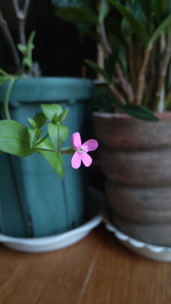 取り込んだ鉢の中から可愛いピンクのお花が咲きました🩷