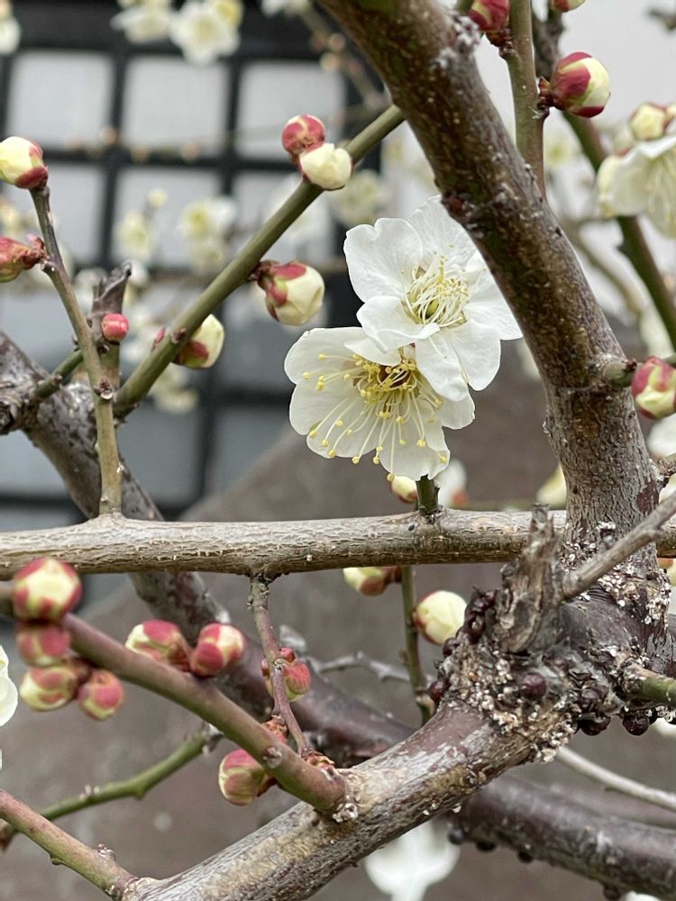 一枚目の梅はご近所のお寺に咲いていたもの。二枚目の夜の梅は実家近くの銭湯のそばにある植木屋さんの梅の木です。
