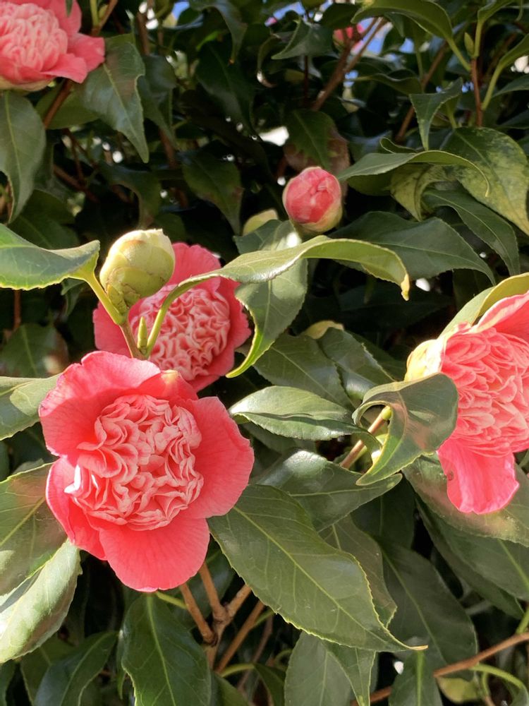 近隣のスーパーの近くのボクハンツバキ卜半椿🌸が咲き出しました💕