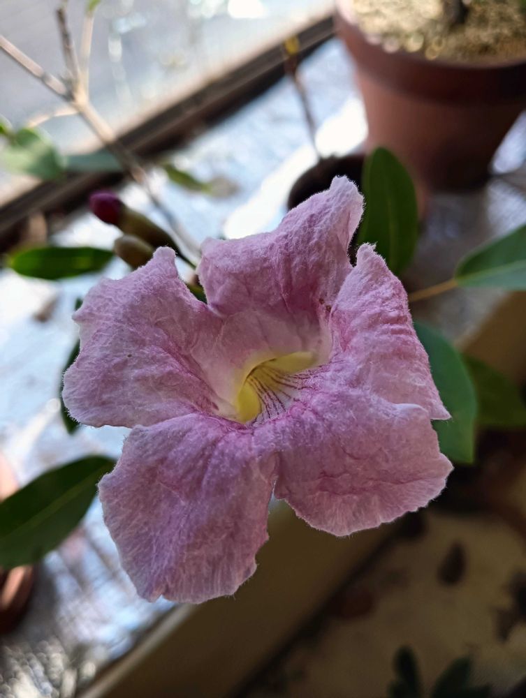 去年に沖縄から枝を頼み挿し木したピンクテコマ(モモイロノウゼン)が咲き始めました。沖縄では開花期が春〜夏になりますがどうやら気温で周年開花するようです。この冬越しの部屋は冬でも最低気温20度以上最高気温30度以上あります。そして花には甘い香りがありました。その見た目からハワイの桜やサイゴンの桜と呼ばれているそうです。ノウゼンカズラ科タブベイア属 原産地メキシコ