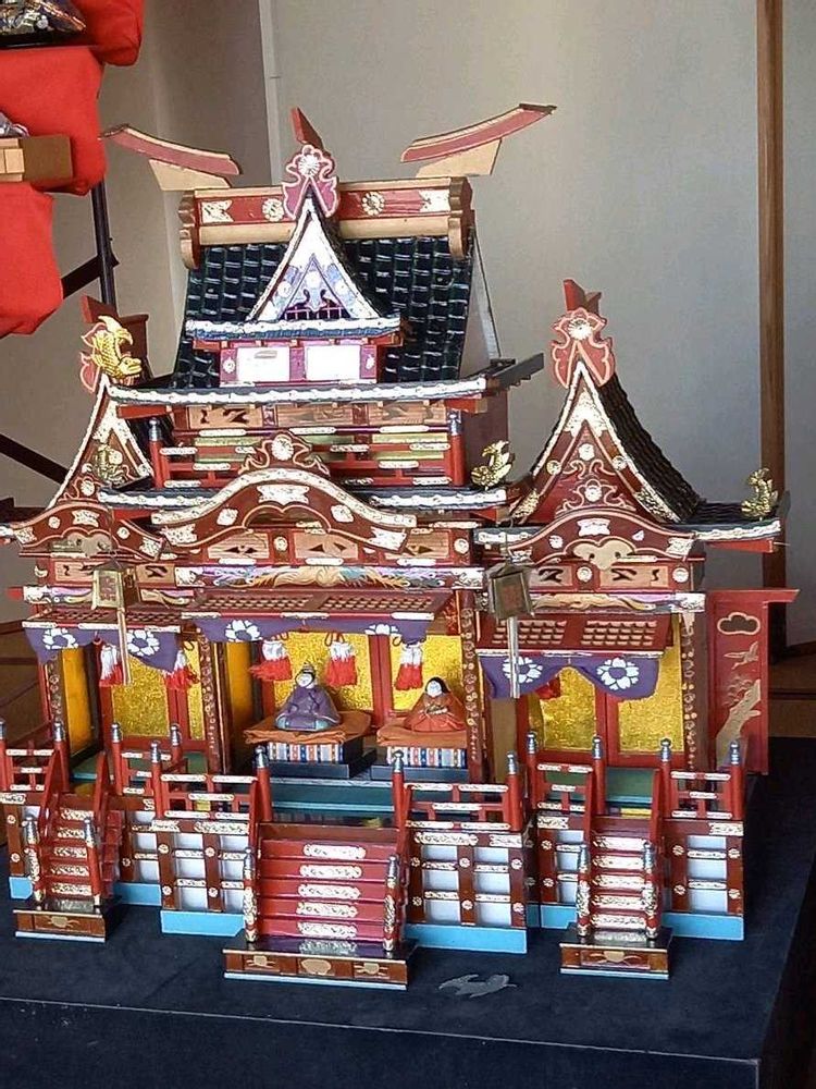 一昨年行った時にレトロな雛人形が展示されていました、その中に「御殿雛」と書かれた雛御殿が…段飾りが主流になる前の雛飾りだそう😳