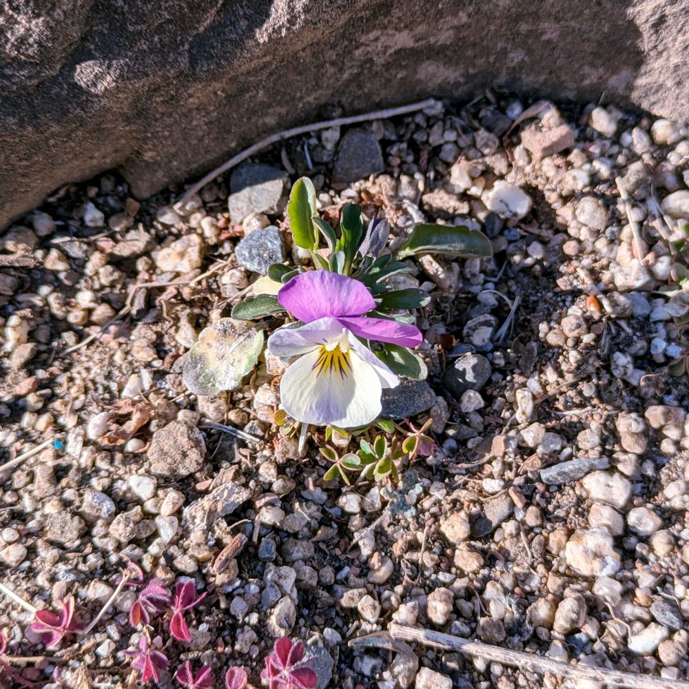 花苗の手入れをしていた時にふと足元を見たらレンガとアスファルトの間からビオラが( * ֦ơωơ֦)