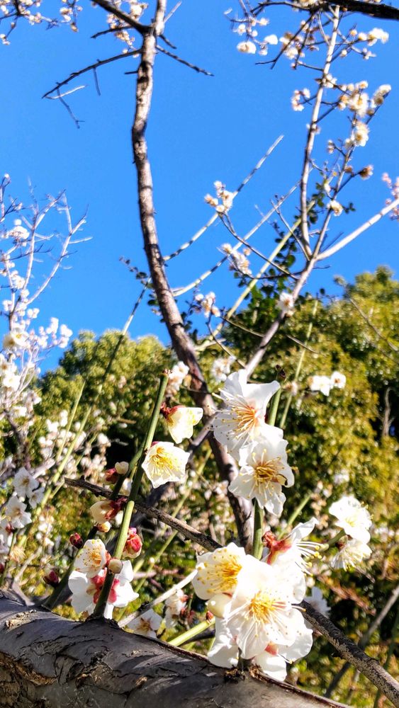 今日のお花が梅だったので、少し足を伸ばした公園に行ってきました。梅は満開で緑色の小鳥が、たくさん来ていましたを