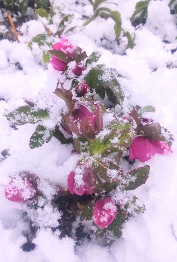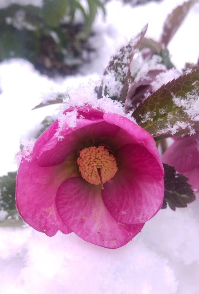 雪に埋もれてたけど 花を持ち上げて パチリ📷✨