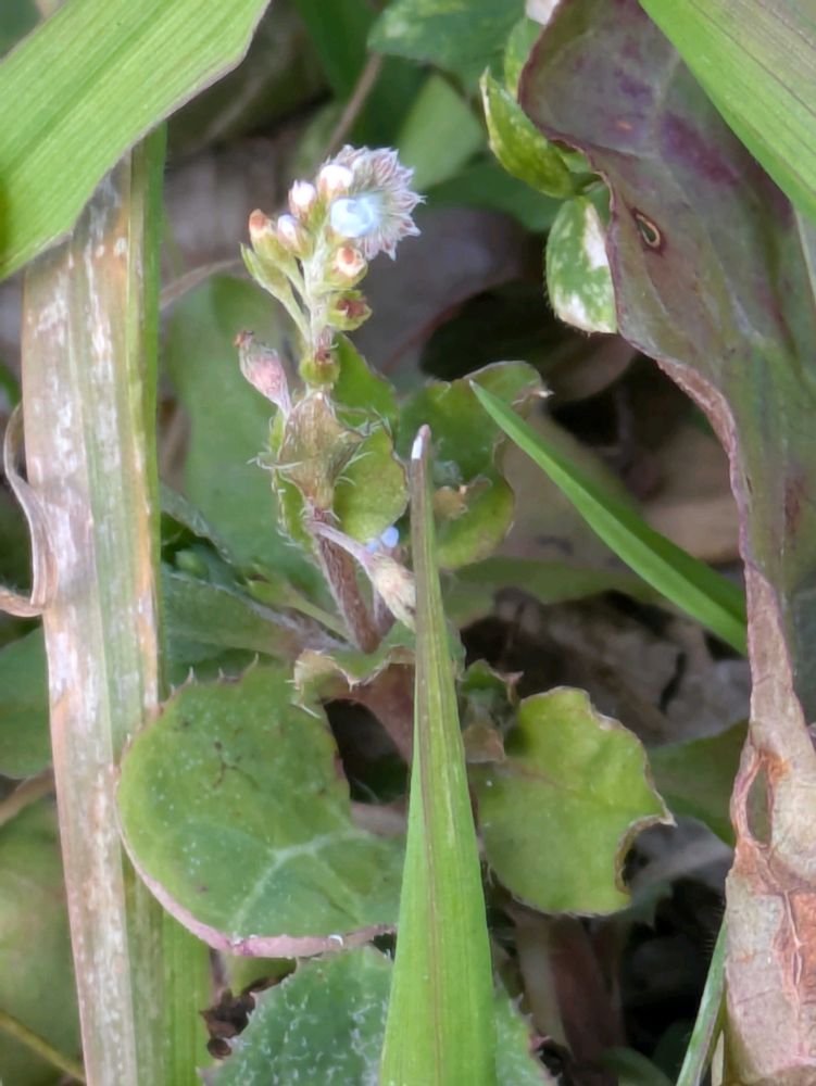 ③④キュウリグサ ムラサキ科 キュウリグサ属 ワスレナグサと似ていますが、うんと小さくて顔を寄せないと見えません。また、とても毛深いのが特徴です.