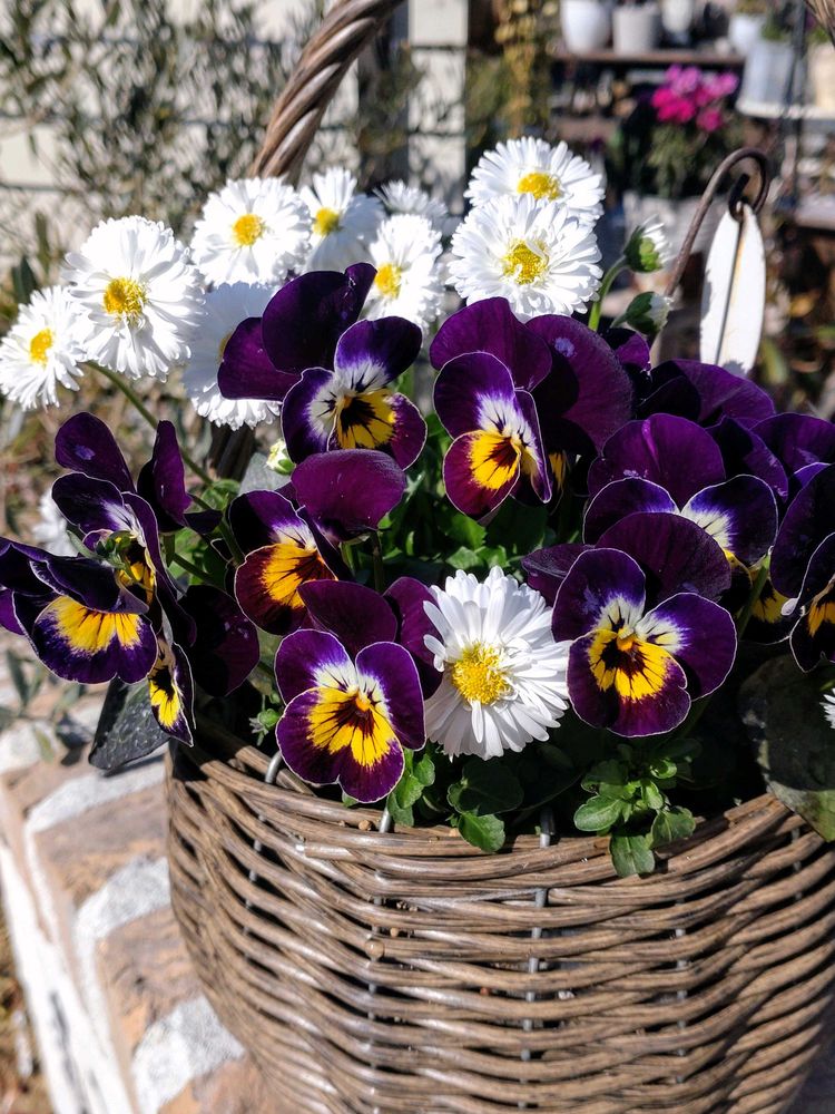 朝から美容室へ行きリフレッシュしました💆寒いと出かけるのがおっくうですが…帰りにはスッキリしますね😉白と紫の組み合わせが可憐な籠寄せ植え🤍💜ほっこりします😃