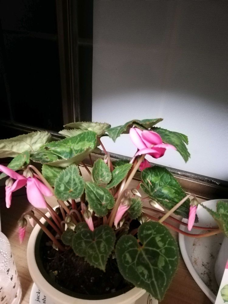 2年目のシクラメンをお部屋に入れてやっと色づいて咲いてくれました😆💕