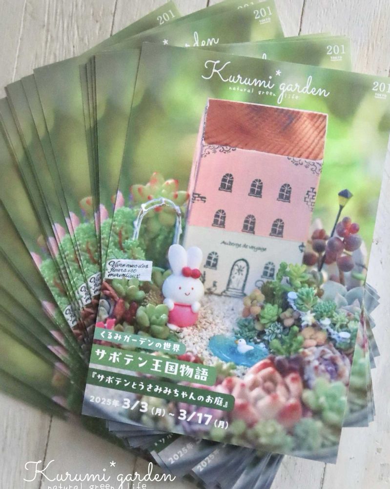 ▷12/13〜25 横浜駅 合同展 Hideharu Fukasaku Art Museum (横浜市神奈川区鶴屋町3-33-2 横浜鶴屋町ビル1F) ▷くるみガーデンミュージアムin横浜 (JR京浜東北線 根岸駅) ※入場料1000円でお茶とお菓子付き 植物や作品の見学、お買い物やワークショップもできます。 完全予約制(住所非公開) ※InstagramのDM、くるみガーデンのメール(kurumi_garden@outlook.jp)からミュージアムの予約出来ます ※定員1〜4名まで ワークショップ(材料費込) サボテン手のひらガーデン4000~ Mサイズの鉢の寄せ植え 6000〜 Lサイズの鉢の寄せ植え 10000〜 多肉植物箱庭、ガラスジオラマ、積み木のアイテム作り 🔴2024.4 フジテレビ めざましテレビ 『キラビト』出演 📕出版書籍 主婦の友社より 『多肉植物とドライフラワーのミニチュアガーデン』(第3刷) くるみガーデン くるみ* ※くるみガーデン•オンラインショップではサイン本の購入ができ、オリジナルしおり🔖のオマケ付き❣️ 🔴YouTube 、X(Twitter)、Instagramやってます 登録してもらえると嬉しいです😊 🔴『くるみガーデン』オンラインショップでは、サボテン、用土、お家、小物、ピック、寄せ植え、など購入できます 🔴Instagram、on-lineShop、WS ↓↓↓↓↓↓↓↓↓
