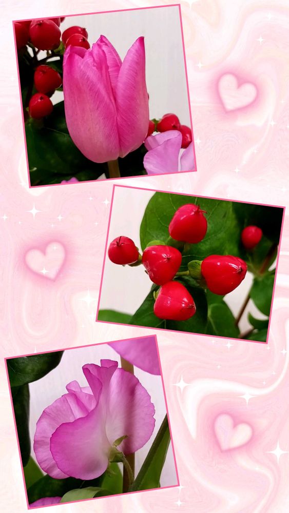 スイトピー,ヒペリカムの実,チューリップ♡♡♡の投稿画像