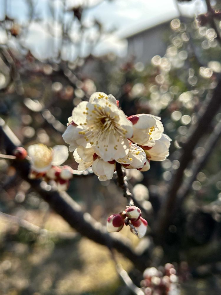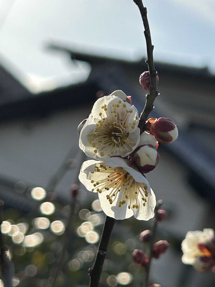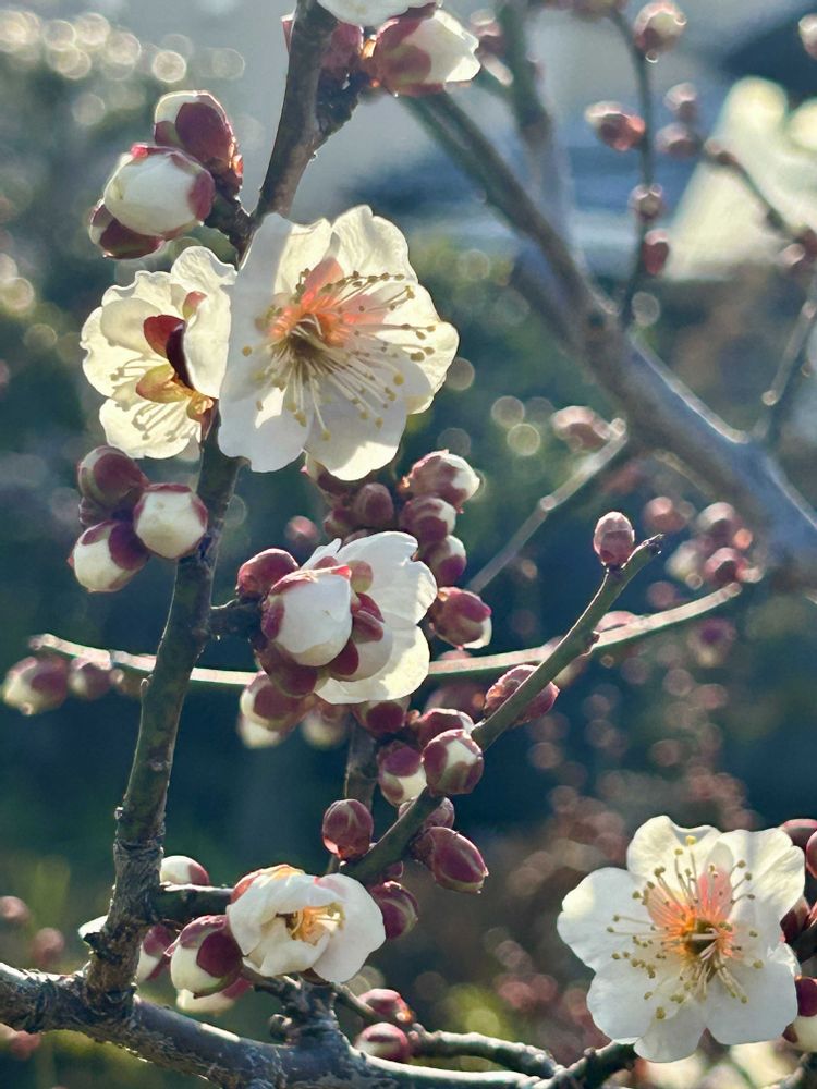 朝日を浴びて、白梅が綺麗です✿゚❀.(*´▽`*)❀.゚✿