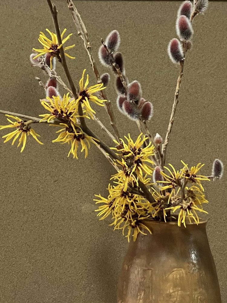 お庭にマンサクが咲くと毎年こうやって飾られるそうです😊