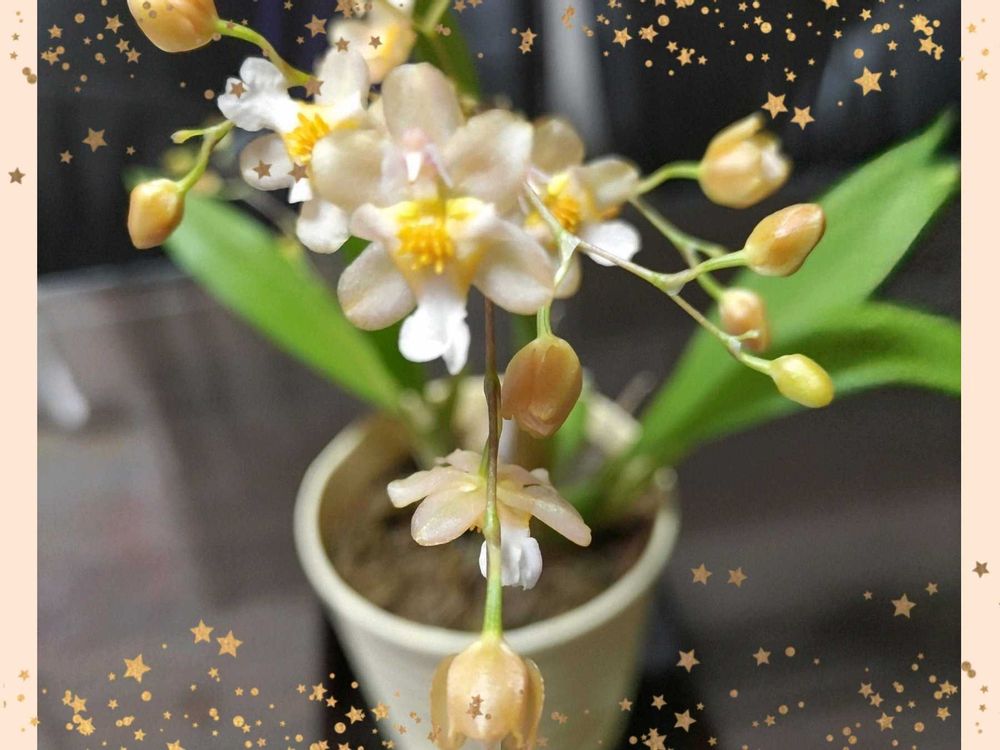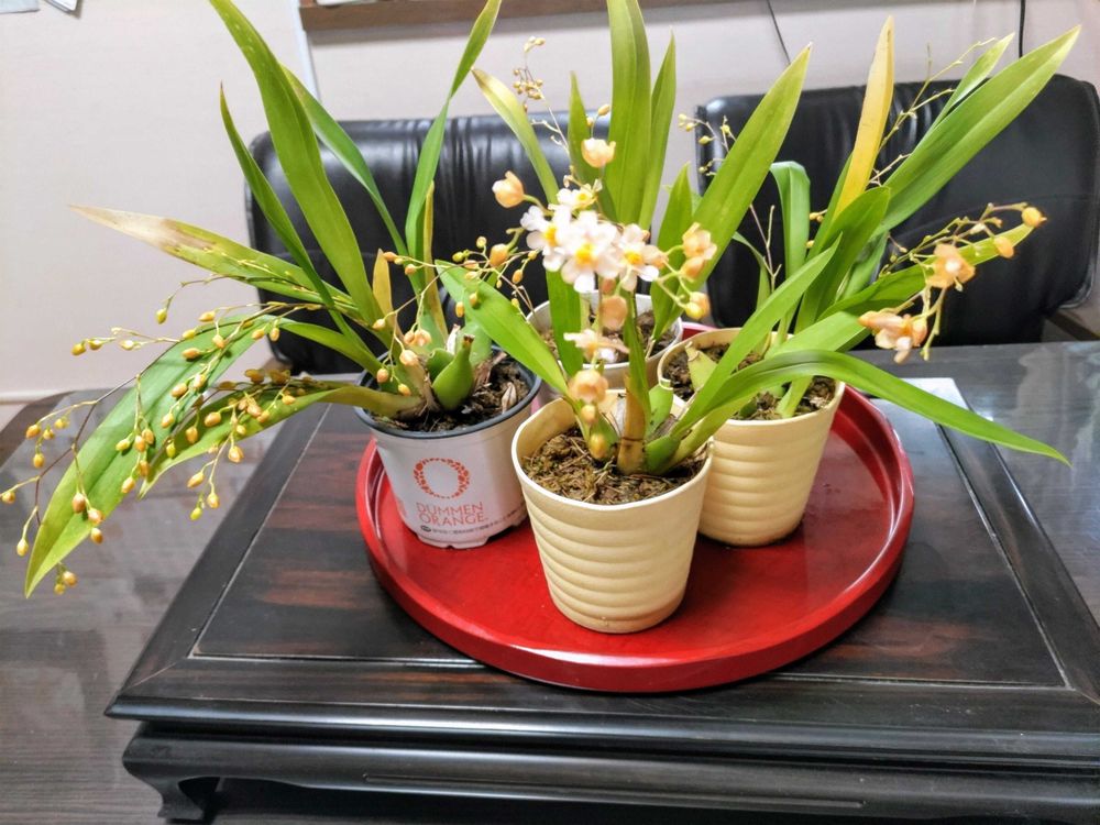 オンシジュ―厶 トィンクル見て下さりありがとう御座いました😉小さくて可愛いですよね🙆ホントは買った時は今の4ポットを一緒にした程で見栄えもありました。