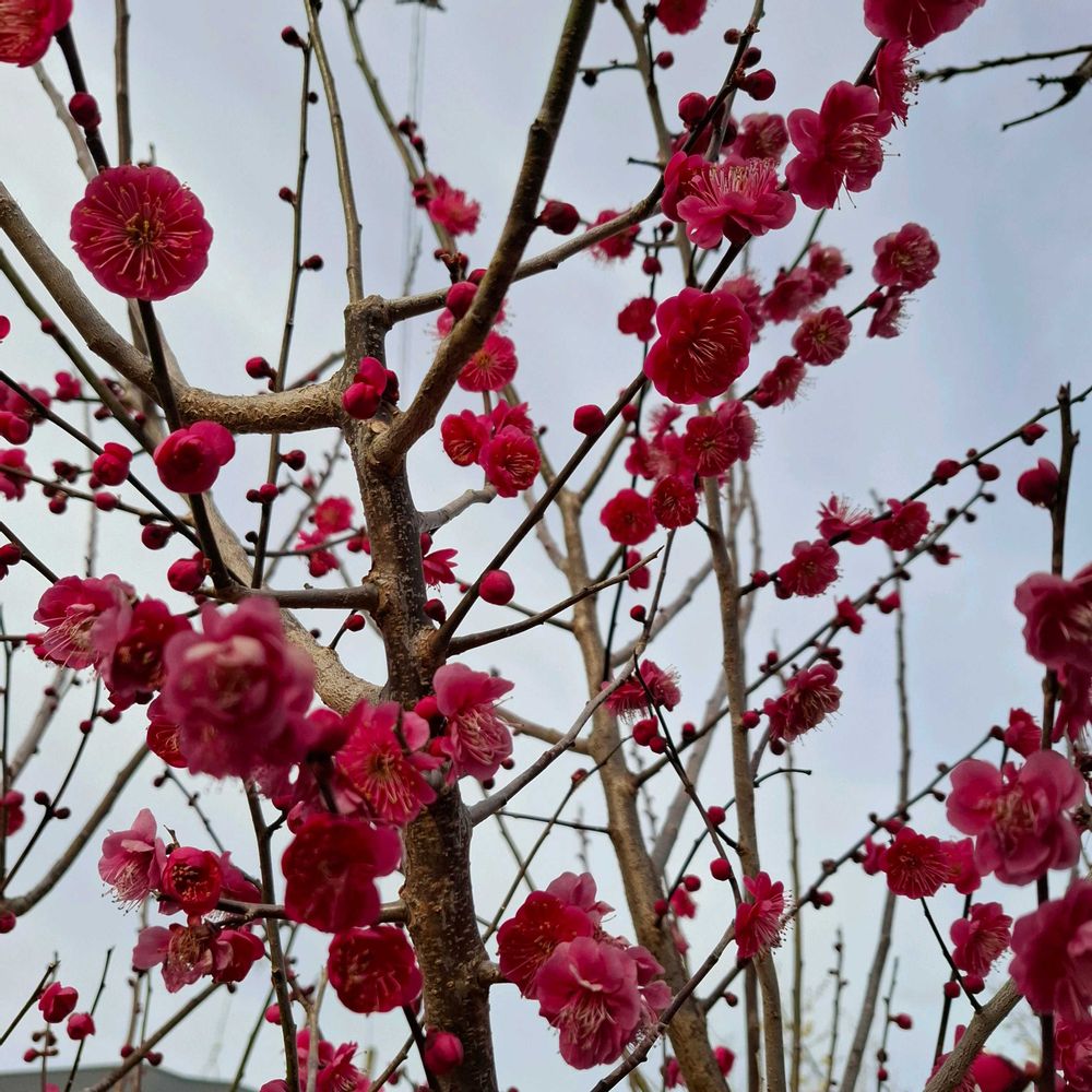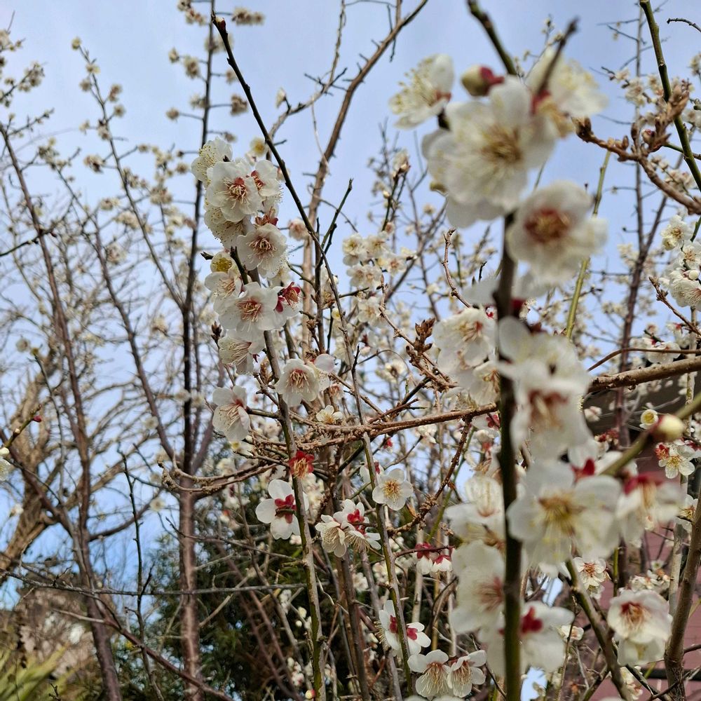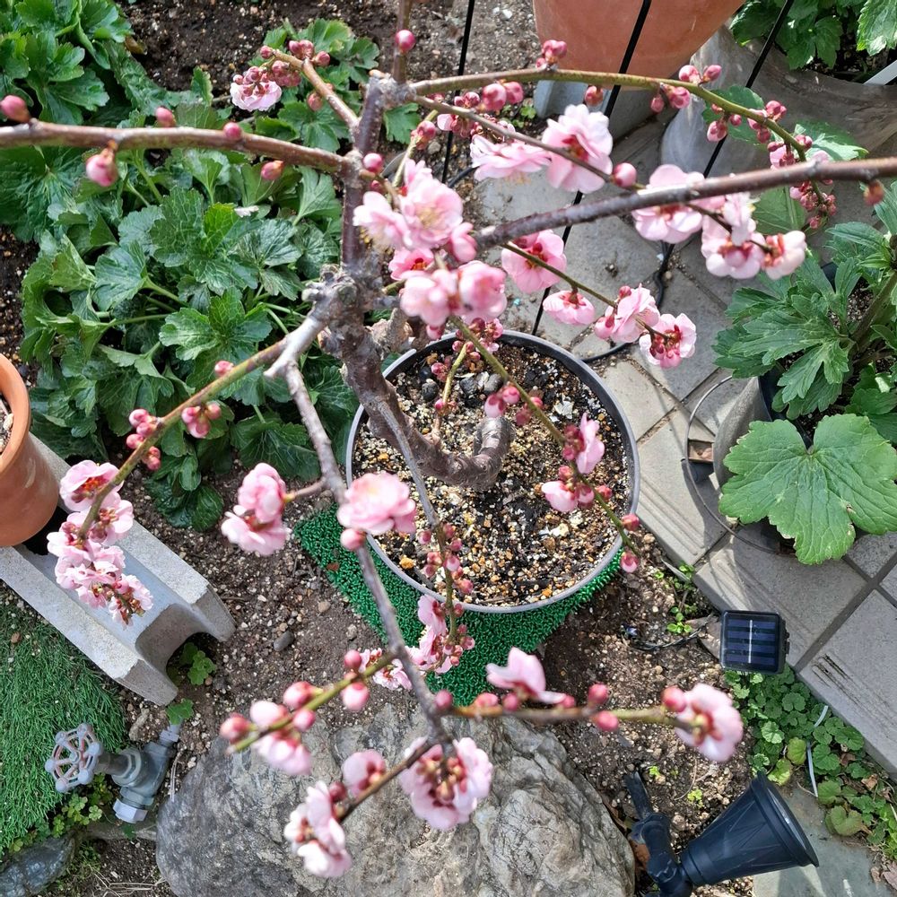 ☝️…紅白の梅~垂れ梅(一昨年娘からのプレゼント)~ラックス(エリス)~1月30日に投稿のラックスの根っ子が伸びてました🙌