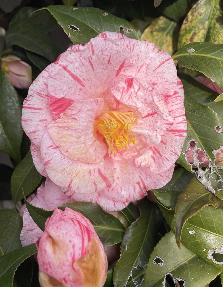 大輪の椿は 落花せず枝についたままで 枯れ色に 葉も虫食いだらけ もと植木屋さんなら