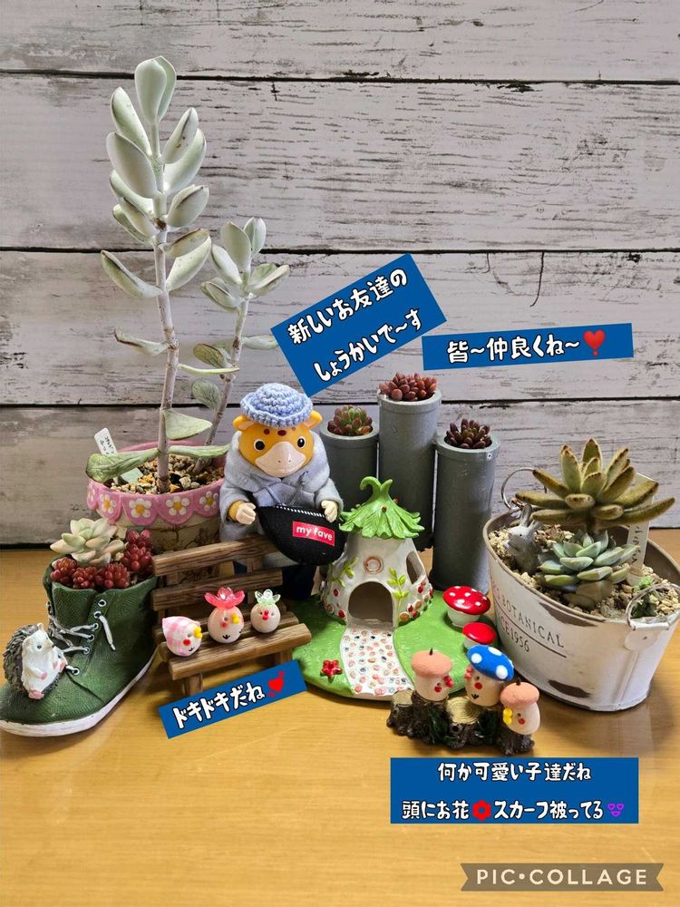 GS5年目になりました🤗 沢山の花ともさんが出来て私の知らないお花やサボテン🌵等々を見せて頂いて日々楽しんで癒されてます(*^^*) こういうサイトも初めてで、失礼な言い方をしていたらごめんなさいm(__)m 今は義父・義母も亡くなり去年実母も亡くなり(実父は16の時亡くなりました)子ども達も独立し(近くに居ますが独身)夫婦2人でのんびり自分達の趣味を楽しんでます🤗 GS初めて多肉、サボ🌵ちゃん、ソクモンちゃん、ソニエンくん、ペコちゃん、お散歩ちゃん、コポタン、トトロ、SNOOPY、ムーミン🐱🐶🦉🐸はにわ🗿等々を自分でネットで買いたくてメルカリやAmazonのやり方も覚えました〰️🤣 (何時も主人や息子に頼んでたけど、また買ったの~🤪って言われるの嫌なので🤭ホホホ) (因みに何時も主人に言っている言葉です🤭) ガチャも増えたな~🤔🤭 でもお出掛け先の楽しみも増えましたよ🤭 主人や息子もチキンとか見付けると買ってきてくれます🤗 断捨離の歳なのにね〰️🤣 いえいえ、今を楽しみましょう~🎵(O゚皿゚O)(^o^)v 無言フォロー😆👌❤️ですが一言頂けたら嬉しいです🥰 フォロワー増やしたいだけの方にはリフォローしません<(_ _*)> まだまだ🔰です。此れからも宜しくお願いいたしますm(_ _)m 2021年6月27日スタート