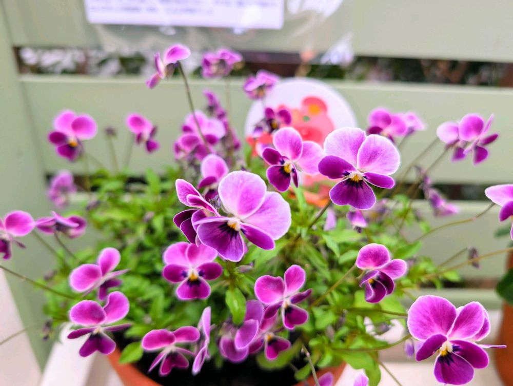 細弁のビオラ「ラビット系」を完成させた育種家さん。個性的な花形や色合いの品種を多く作出。
