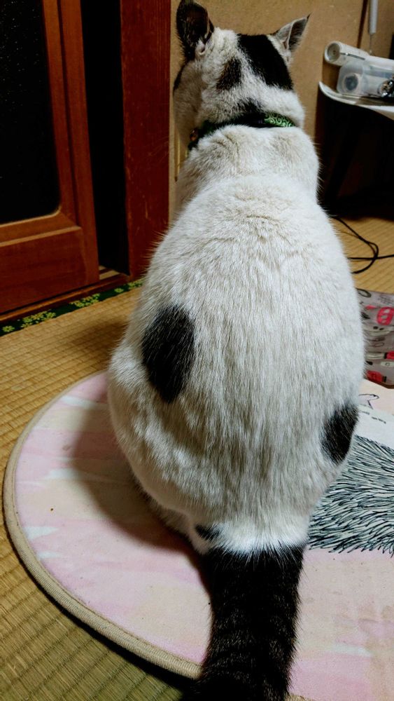 チョビちゃん、ふくよかで黒い●模様がほんと豆大福みたい〜ꉂ🤣𐤔可愛いね〜💕