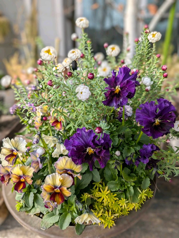 ①寄せ植え 花かんざし ヌーベルバーグ パピエ②セルリア ブラッシングブライド③エリカ ふっくらももちゃん