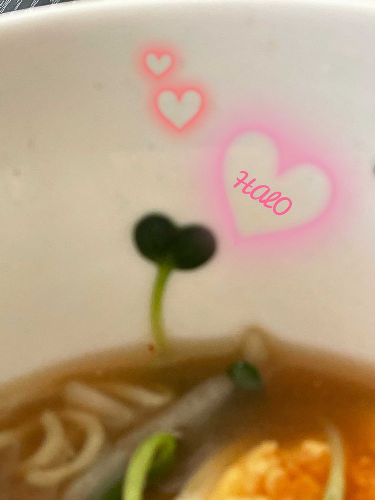 この前 うちで作って食べたラーメン🍜のトッピングは モヤシとカイワレごま油あえ。( ・ὢ・ ) ムムッカイワレたん かわいいんでないかい〰️💕︎💕︎