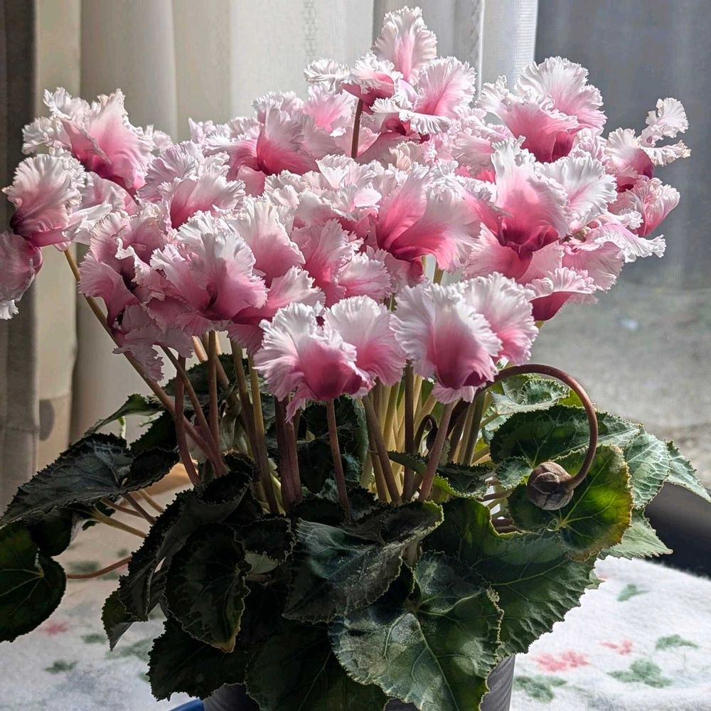 白桃さんのシクラメンフリンジ咲き,窓辺 リビング,挿し木 3年目の投稿画像